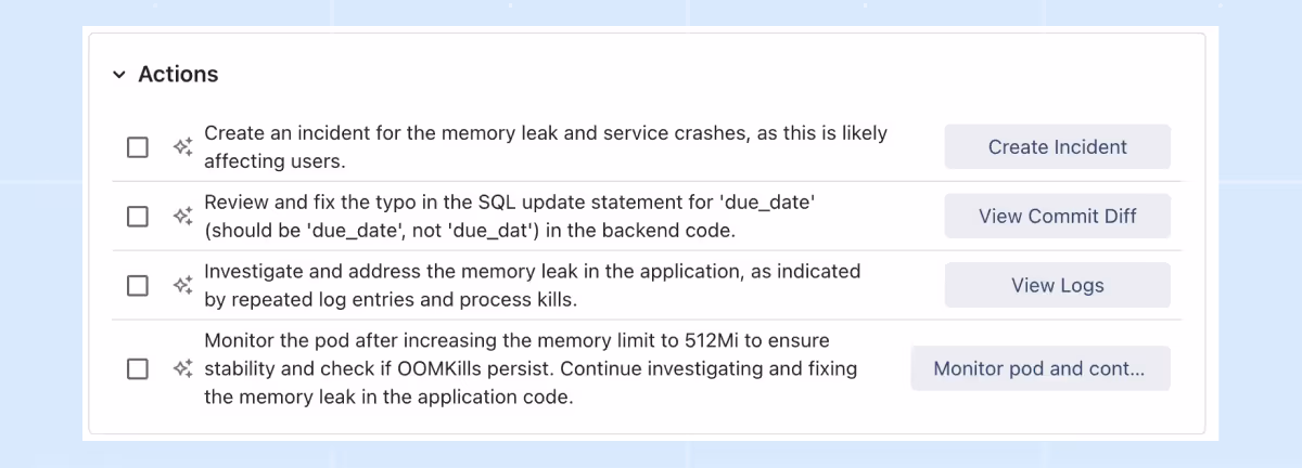 Continuous learning: Feedback loops integrated into workflows help our agent refine its recommendations and actions over time, improving accuracy and effectiveness with every incident. - Safe autonomous execution: By defining safe, controlled scopes for automated remediation, the agent can execute corrective actions independently where appropriate, accelerating resolution while retaining operational safety and rollback capabilities.