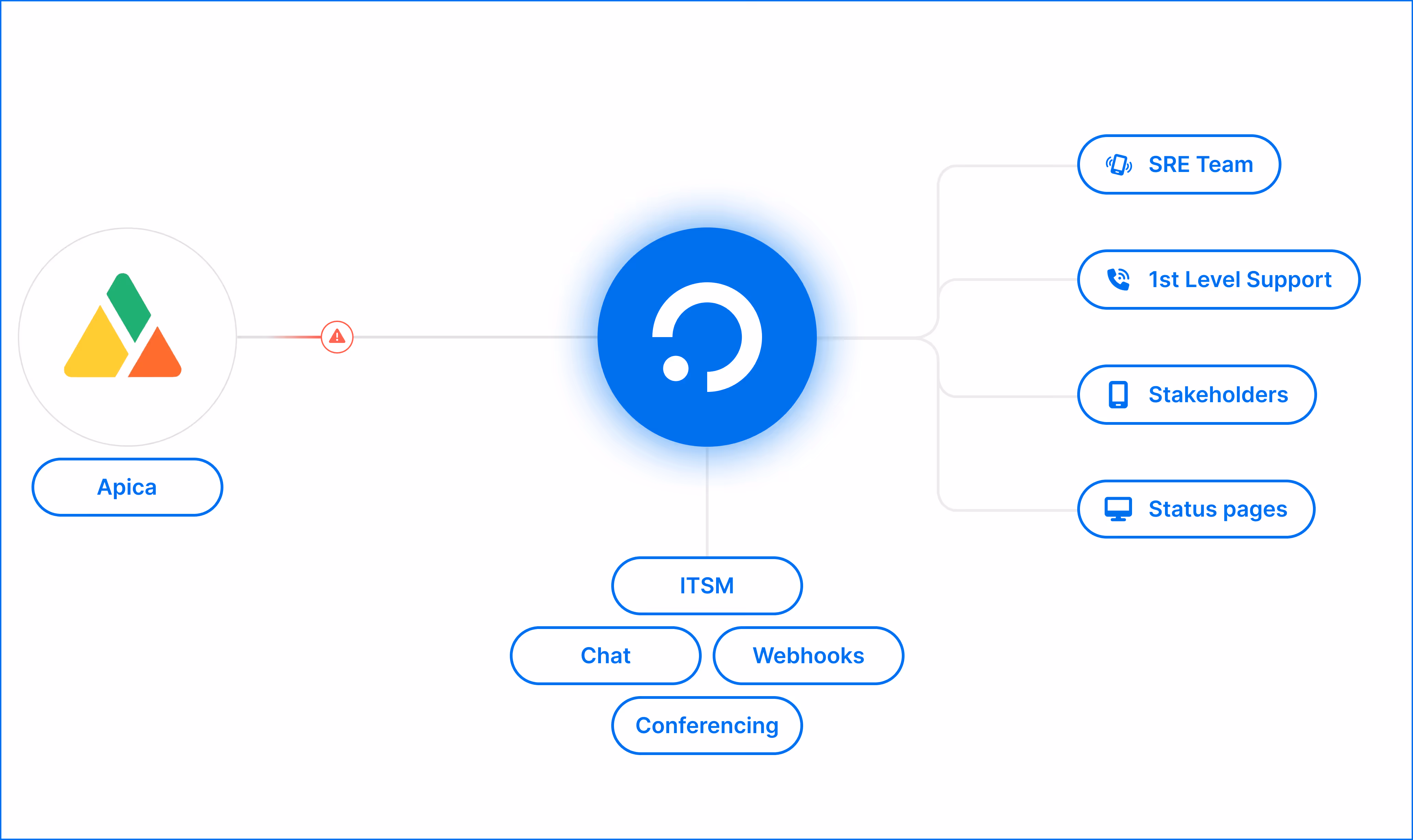 ilert bietet jetzt eine native Apica-Integration. Sie verbindet Telemetrie-Events mit der Alarmierung und Incident-Kommunikation sowie dem Bereitschaftsmanagement von ilert. Sie hilft SRE-, DevOps- und IT-Betriebsteams, die Erkennung von Incidents schneller in Aktionen zu überführen, die Alarmflut mithilfe von KI zu reduzieren und Stakeholder ohne unnötige Benachrichtigungen auf dem Laufenden zu halten.