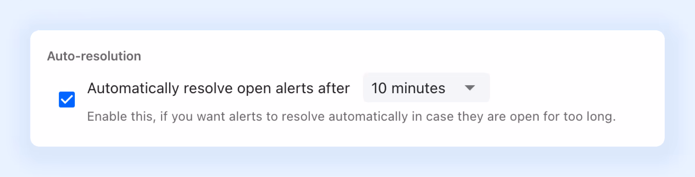 Folgen Sie den Anweisungen nach Ihren Wünschen und stellen Sie die automatische Lösung von Alarmen auf 10 Minuten ein (dies ist nur für diese spezifische Alarmquelle erforderlich).