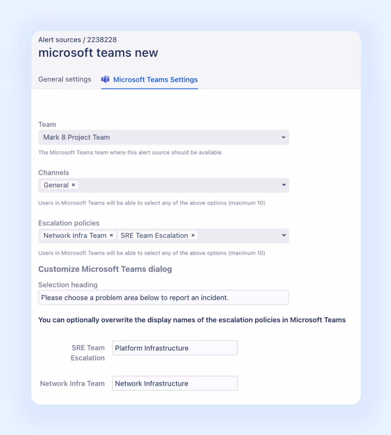 Wir empfehlen, einen Blick auf die zusätzlichen Optionen der Microsoft Teams-Alarmquelle in ilert zu werfen. Dort können Sie die Benutzererfahrung innerhalb des Chat-Tools weiter anpassen.