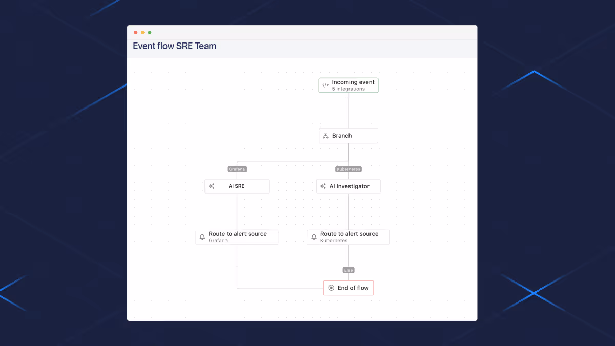 - Zeitbasiertes Routing. Während der Supportzeiten gehen Alarme an die primäre Bereitschaft; außerhalb der Zeiten können sie an ein anderes Team eskalieren oder einer anderen Richtlinie folgen. Ohne Event Flows erfordert dies häufig mehrere Alarmquellen oder fragile externe Logik.
