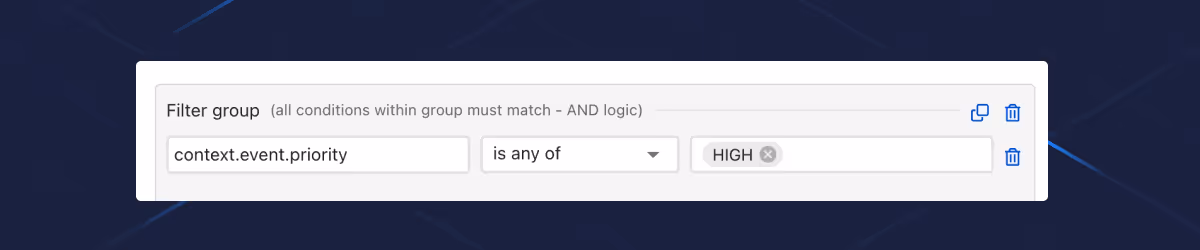 Event Flows enthält eine prägnante Ausdruckssprache, die von vertrauten Programmiermustern inspiriert ist. Schreiben Sie Bedingungen, die auf Event-Daten, Kontext und Systemzustand zugreifen. Weitere Informationen zu ICL finden Sie in unserer Dokumentation.