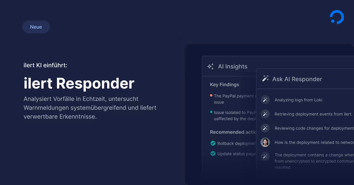 Darum verpflichten wir uns, eine AI-first-Plattform zu werden und künstliche Intelligenz in den Kern all unserer Aktivitäten zu integrieren. Der ilert Responder ist mehr als ein weiteres KI-Feature; es ist die fundamentale Neugestaltung der Incident-Response.