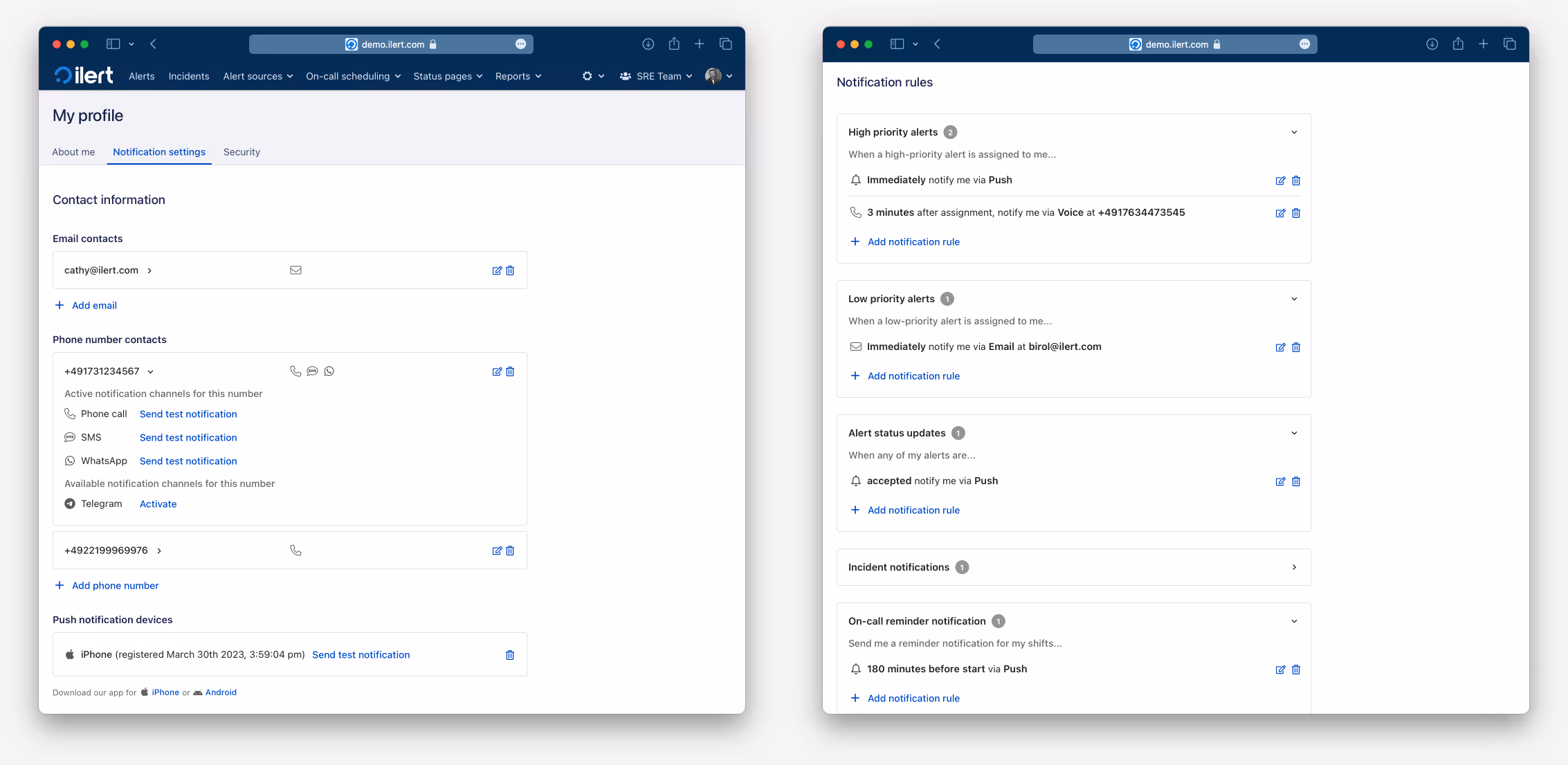 Experience seamless communication with ilert's new Notifications UI, designed to enhance usability and provide a modern, user-friendly interface. Learn more about notification settings in our documentation.